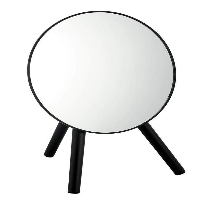 Staande cosmeticaspiegel met praktische en stijlvolle haken om accessoires aan te hangen in de kleur zwart.