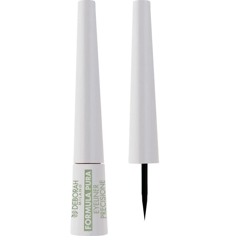 De Eyeliner Precisione uit de Formula Pura lijn van Deborah Milano is een vloeibare eyeliner met een smalle, taps toelopende vilten stift-applicator. Deze ultra precieze eyeliner is bevat geen siliconen, petrolatum en parfum bevat maar geeft wel een intense, long lasting kleur af.