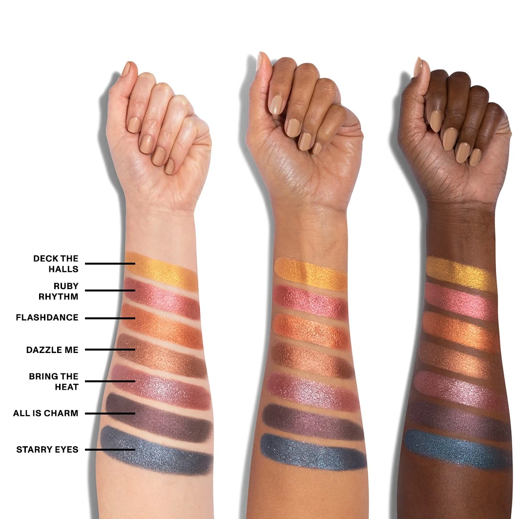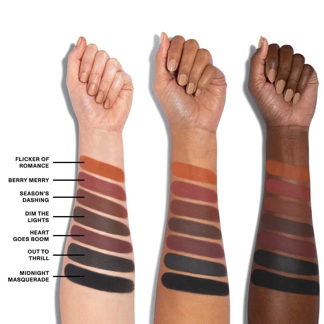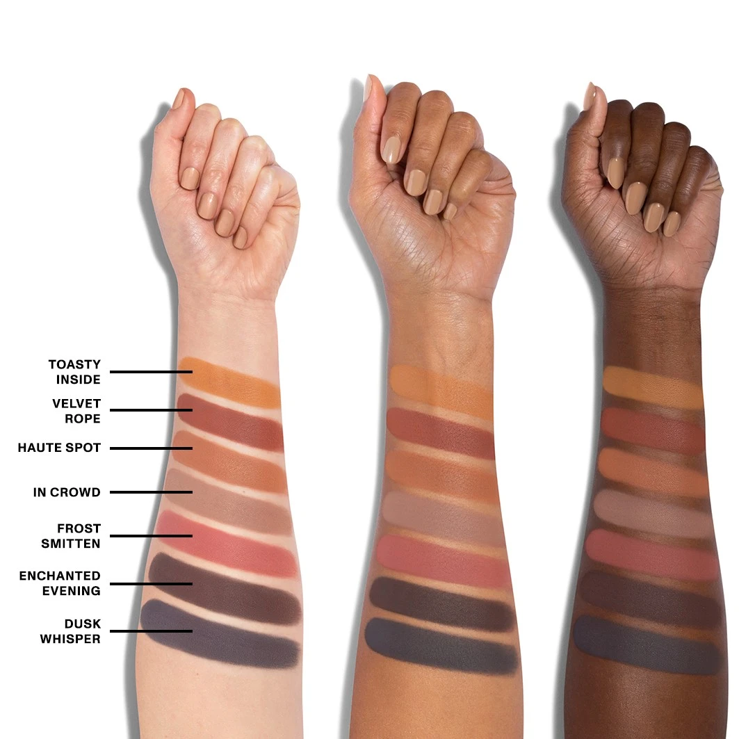 Uw kunstenaarschap zal geen slag missen deze feestdagen met dit limited-edition, feest-klaar palet van overdadige mattes en shimmers. Zeven rijen rijk gepigmenteerde, ton-sur-ton karamels, perziken, mokka’s, pruimen, houtskool en metallics zetten het volume in een handomdraai van ingetogen naar dramatisch, of mixen en mengen voor elke gelegenheid.