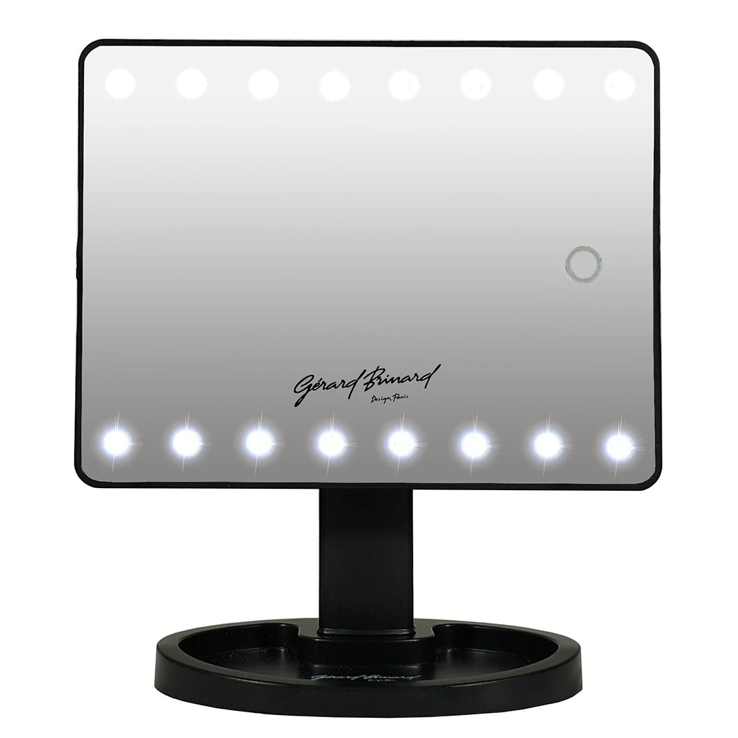 De Make-Up Spiegel LED 10x van Gerard Brinard is voorzien van 16 LED lampjes en beschikt over een touch-knop bediening. Het 10x vergrotende zuignap spiegeltje zorgt ervoor dat u met uiterste precisie kunt epileren, opmaken of zelfs uw lenzen kunt aanbrengen. U kunt de spiegel zowel naar voren als naar achteren kantelen zodat deze op elke gewenste hoogte gebruikt kan worden. Ook kunt u de spiegel zelf een kwartslag draaien zodat een breed oppervlak heeft. De spiegel werkt op 4x AA batterijen waardoor deze spiegel mobiel is. Door de LED verlichting geeft de spiegel duidelijk, helder wit daglicht af en is de spiegel energie zuinig. Door de stevige poot kunt u de spiegel gemakkelijk gebruiken op uw tafel. Ook is de poot voorzien van een bakje waar u wat kleine spulletjes in op kunt bergen. De afmetingen van de spiegel zijn 27 x 16.5 x 12 cm.