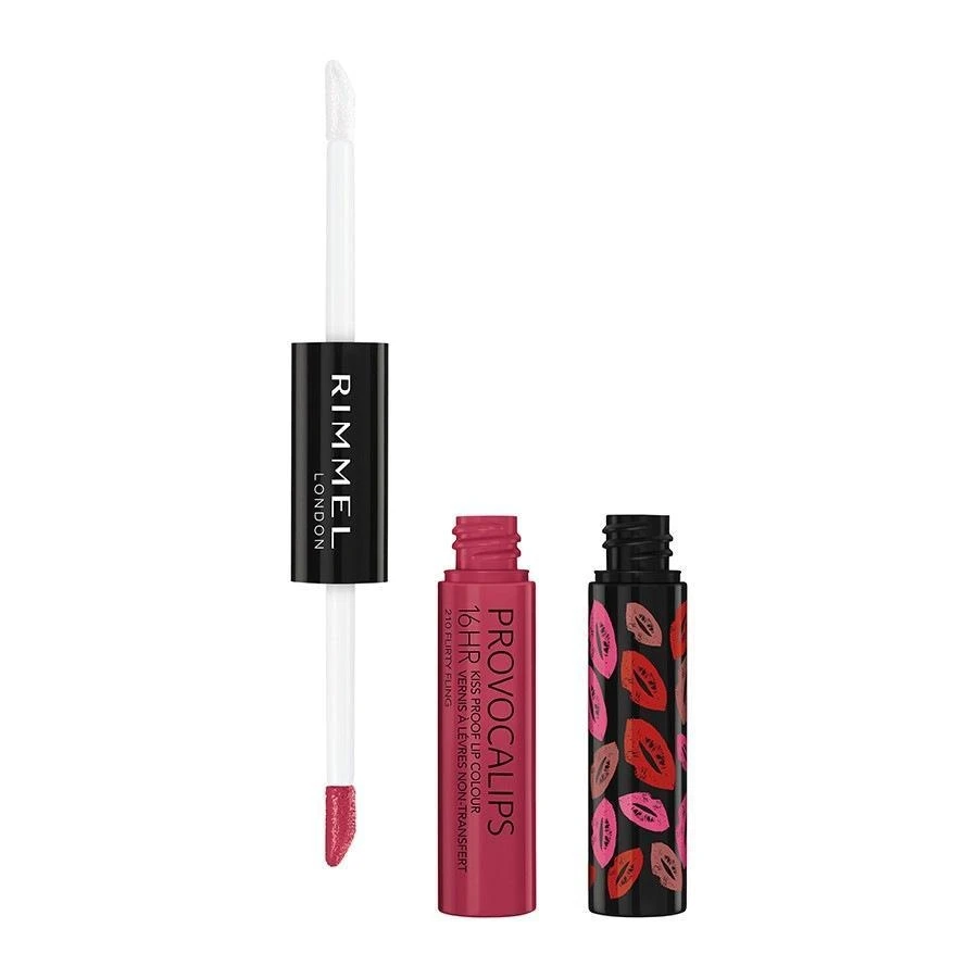 Rimmel London Provocalips lippenstift behoudt tot wel 16 uur lang een intense, eindeloze kleur op uw lippen. De tweedelige lippenstift bestaat uit een base coat en een topcoat waarmee u de kleur locked. De formule voelt niet zwaar aan en is zó flexibel dat het zich aanpast aan de beweging van de lippen.